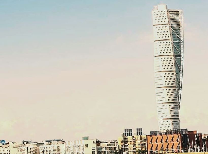 Turning Torso видно из любой точки города. Это известный 190-метровый небоскреб с визуальным эффектом лихо закручивающегося фасада. Самое высокое сооружение Северной Европы, спроектированнное не кем-нибудь, а Сантьяго Калатравой – испанским архитектором, известным своими выразительными постройками в стиле био-тек. Состоит из 9 секций, 54 этажей. Работы проводились в 2001-2005 гг.