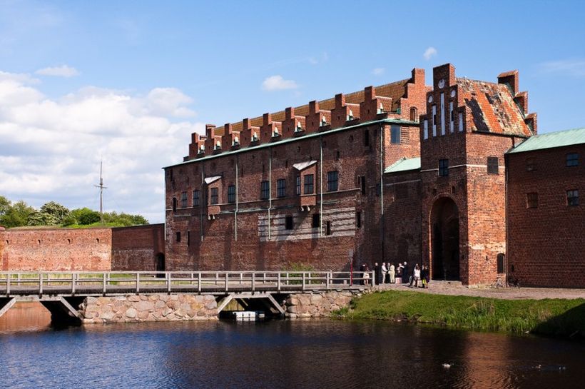 Замок воздвигнут в 15 в. при короле Эрике Померанском, в 16-м реконструирован. В ренессансном стиле, с элементами барокко. Вокруг крепостная стена, две уцелевшие башни, ров. Он побывал и королевской резиденцией, и тюрьмой. Например, был тут заключенным Джеймс Хепберн, третий муж шотландской королевы Марии Стюарт. Замок погружает в эпоху средневековья. В помещениях – коллекции гобеленов, картин. В саду – разнообразные тематические зоны.