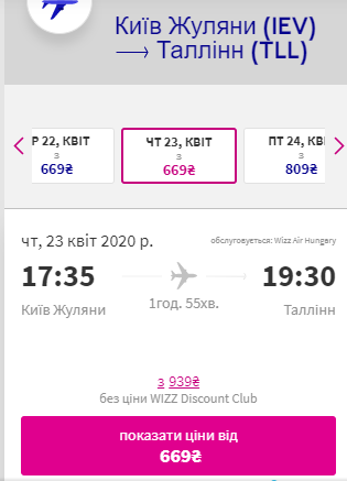 Наприклад, пропонуємо дати подорожі: 23-29 квітня. Вартість авіаквитків в обидва боки – €58 для учасників wizz-клубу та €78 для всіх інших.