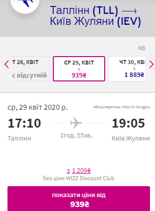 Щоб отримати найнижчу ціну, необхідно мати членство у Wizz Discount Club або придбати його під час бронювання.