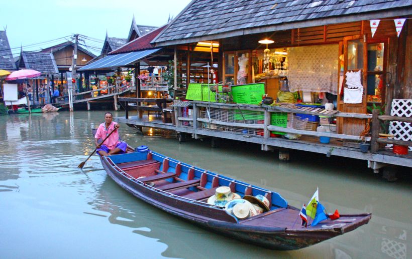 Чтобы попасть сюда, следует арендовать лодку или купить тур. Однозначно, это не самое дешевое место, и тут, кроме продуктов питания, можно купить сувениры и препараты тайской медицины, правда, сомнительного качества.