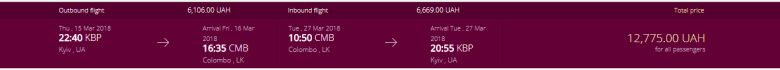 Серед пропозицій авіакомпанії Qatar Airways ми вибрали такі: