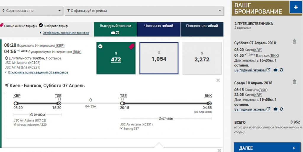 Air Astana объявила акцию: “Бангкок для двоих” – компаньонские тарифы для двух пассажиров из Киева. Она может быть интересной пассажирам, которые летят вдвоем.