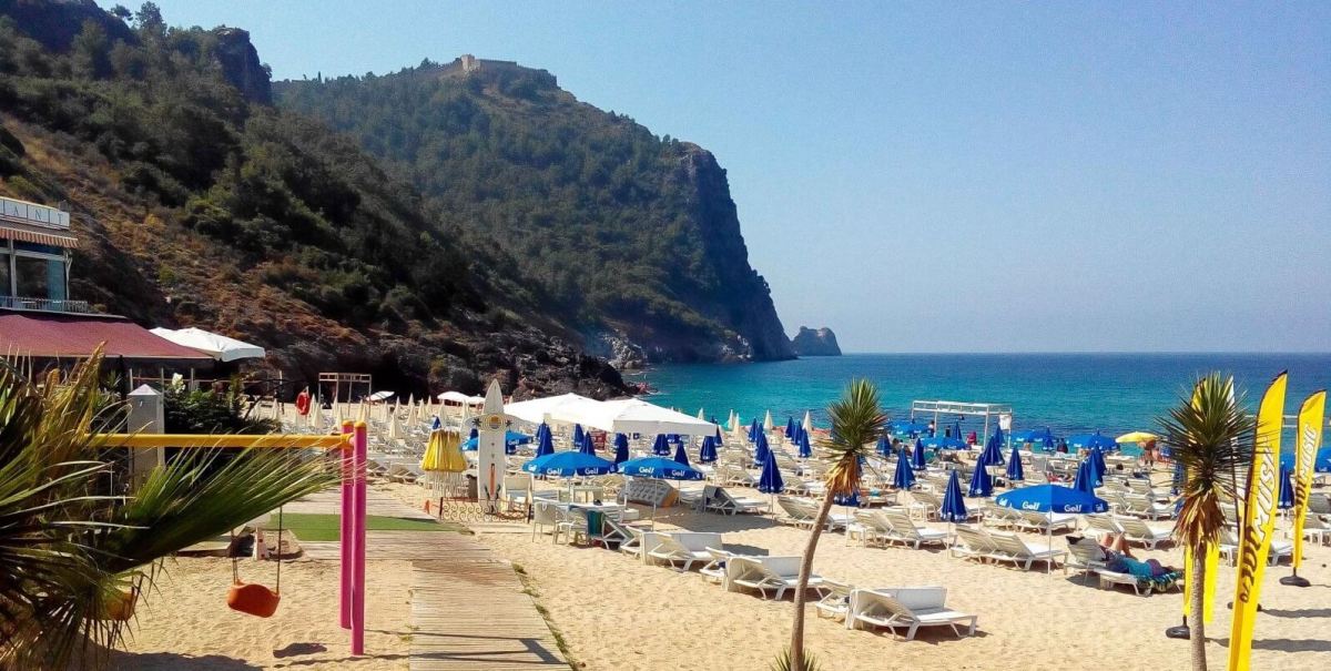 Цей гарний пляж біля підніжжя гір Таурус легкодоступний з будь-якої точки Аланії. Пляж Клеопатри має незаперечну перевагу – це неймовірна краса природи. Він оточений горами і відкриває чудові панорами. На одній з височин велично стоїть Аланійская фортеця. Саме тому пляж Клеопатри – одне з найкращих місць для фотосесії.