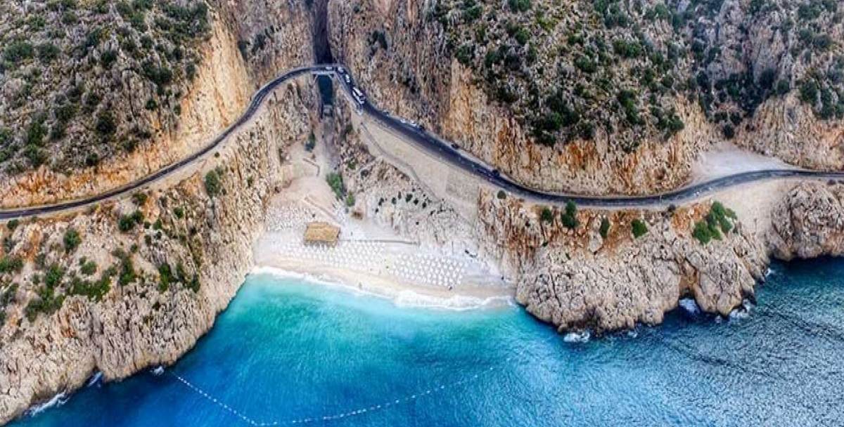 До цього привабливого пляжу ведуть круті сходи. Він є місцем зустрічі Каша і Калкана, двох найпопулярніших місць відпочинку в Анталії, і пропонує одні з найбільш захоплюючих видів на схід і захід в Туреччині. Звичайні ресторани, білий пісок і спокійне море доповнюють картину.