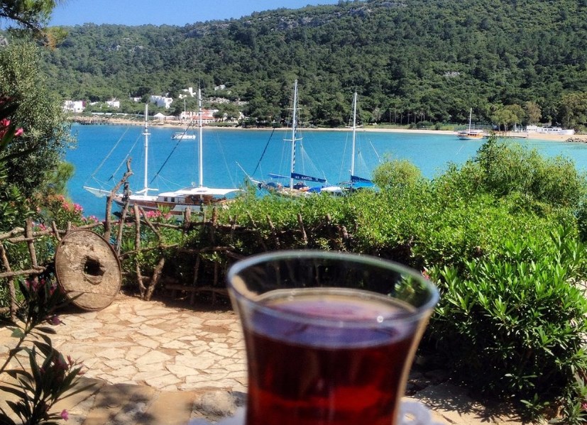 Но самое прекрасное – это здешняя кофейня. Нет, не такая, как вы представили… Это шатер! Стен нет, на деревянные подпорки натянуто толстое полотно, вокруг – трава и цветущие кустарники, веет ветер… и открывается восхитительный вид на море и горы. Пол кофейни устелен турецкими коврами. Присаживайтесь к круглому металлическому столику, украшенному резьбой, – прямо на ковры или на лавки вдоль стен, также устеленные коврами. Меню достаточно разнообразное, но мы взяли кофе по-турецки – маленькая чашка крепкого ароматного напитка, стакан воды и несколько кусочков рахат-лукума в качестве закуски. Стоимость – 10 лир. Это место насыщенно аутентикой и в то же время отлично подходит для релакса. Обязательно к посещению!