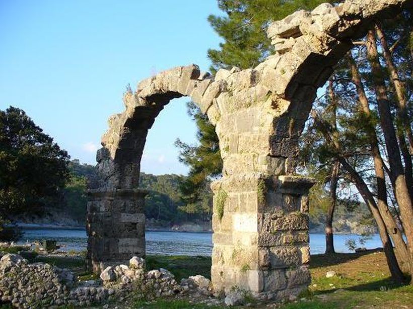 В 10 км к югу от города – руины древнегреческого города Фазелис, основанного в 7 веке до нашей эры колонистами с острова Родос. Здесь сохранились все элементы давнего города – мы видели остатки древних храмов, бань, колонны с биографиями выдающихся жителей, некрополь, оборонные стены и шикарные въездные арочные ворота. Самый примечательный объект – отлично сохранившийся амфитеатр!