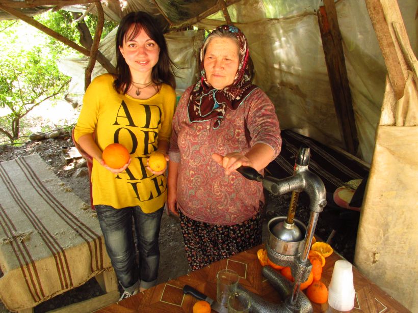 На обратном пути мы выпили по стакану свежевыжатого апельсинового сока у местной бабушки – всего 4 лиры, – а кроме того – испытали очарование общения на разных языках, когда мало что понимаешь, но расстаешься хорошими друзьями! О, как я люблю такие встречи с местными!