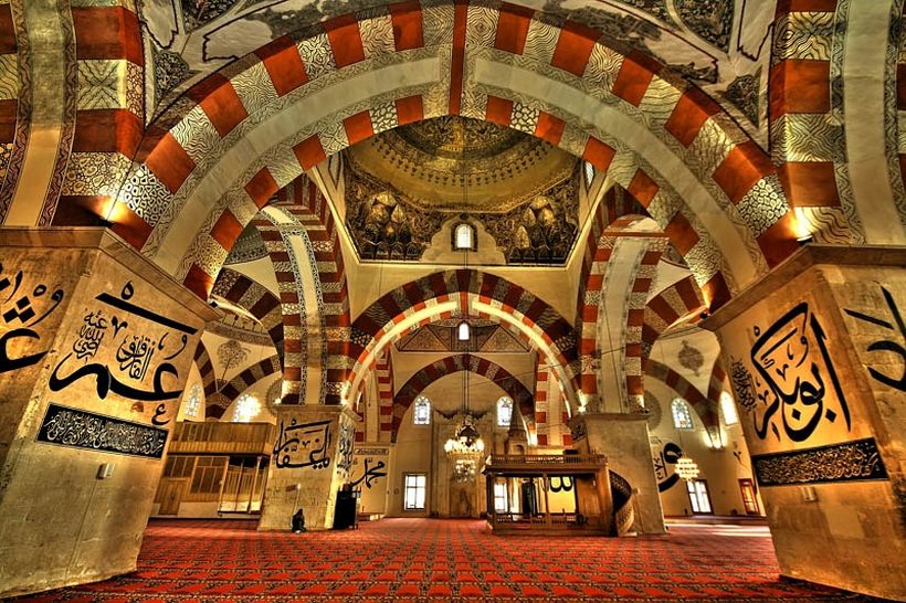 Мечеть Эски (Старая мечеть) поражает масштабами. Ее колонны и внутренние стены украшены огромных размеров арабскими надписями. Среди них – имена Аллаха и пророка Мухаммеда, официальная подпись султанов «тугра» и другие арабские письмена.