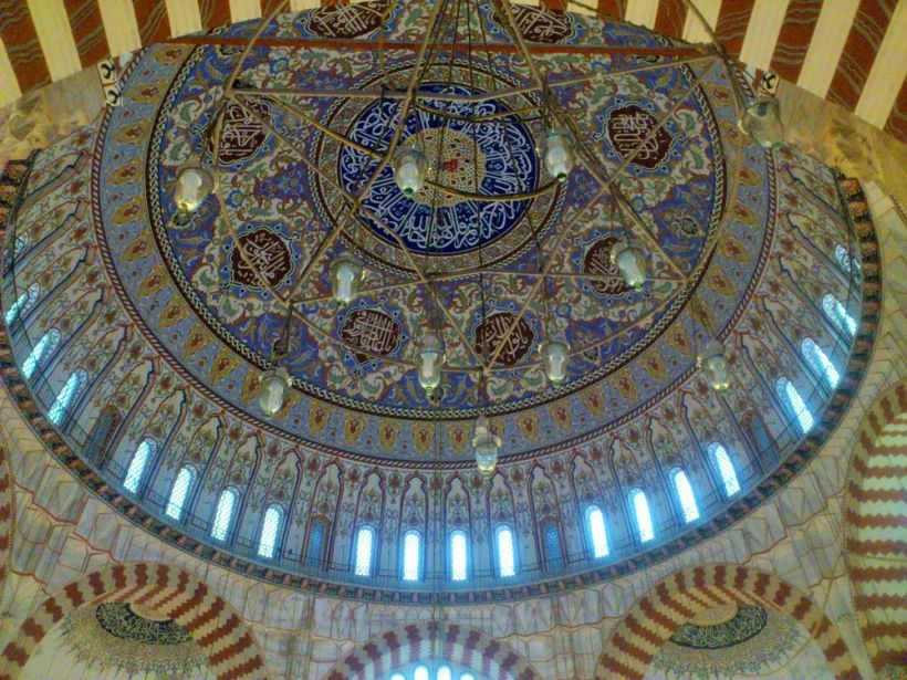 Мечеть Юч Шерефели или Мечеть с тремя балконами. Ее купола расписаны невероятными по сложности орнаментами. Большое удовольствие – рассматривать их, вникать в высокое искусство древних турецких художников.