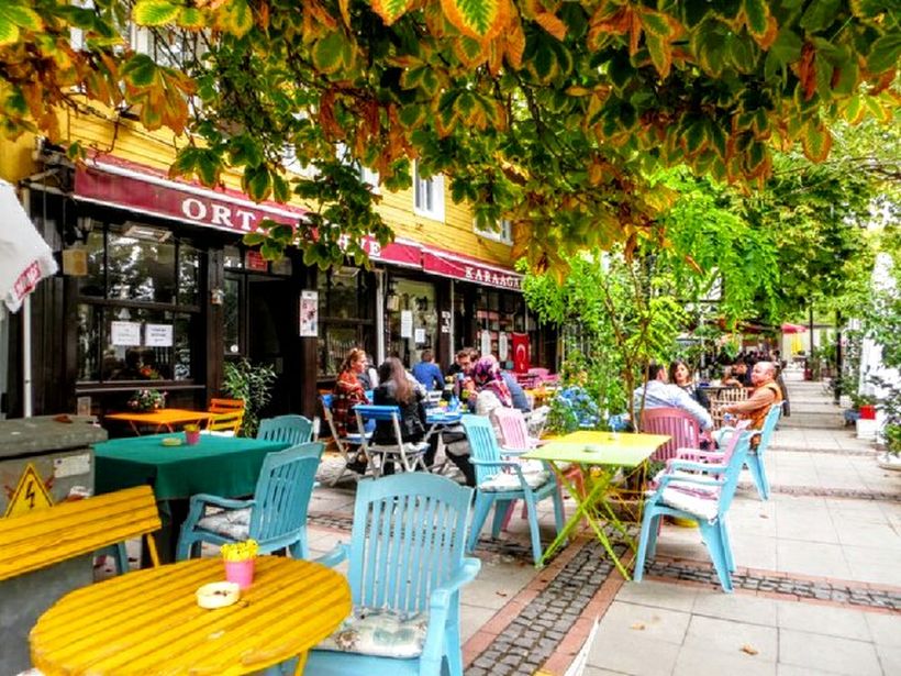 Пешеходная улица является частью довольно большого района со старинными домами. Здесь располагается неисчислимое множество кафешек с лучшими блюдами турецкой кухни.