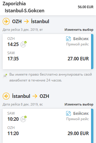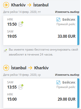 Наприклад, авіаквитки на прямі рейси та проживання в Стамбулі 5 ночей буде коштувати €101 з особи.