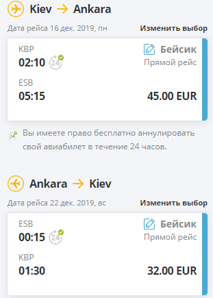 Дати: 16-22 грудня. Вартість квитків у два боки — €77