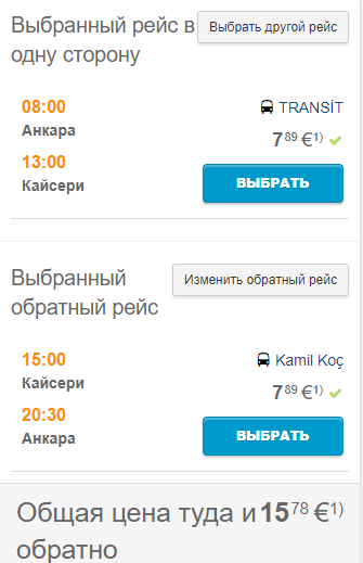З Анкари до міста Кайсері можна доїхати автобусними рейсами перевізників Metro Turizm або Kamil Koç. Забронювати квитки на автобусні рейси можна на сайті www.busradar.com.