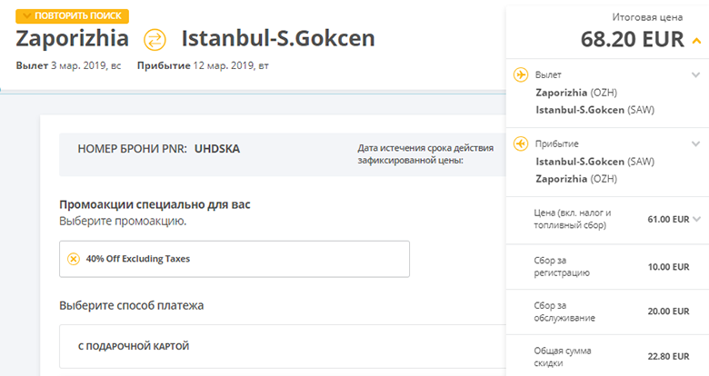 Pegasus Airlines пропонує 40% знижки на міжнародні рейси. Наприклад, з міст України можн долетіти до Анкари або Стамбулу. Ціна квитків стартує від €64 у два боки.