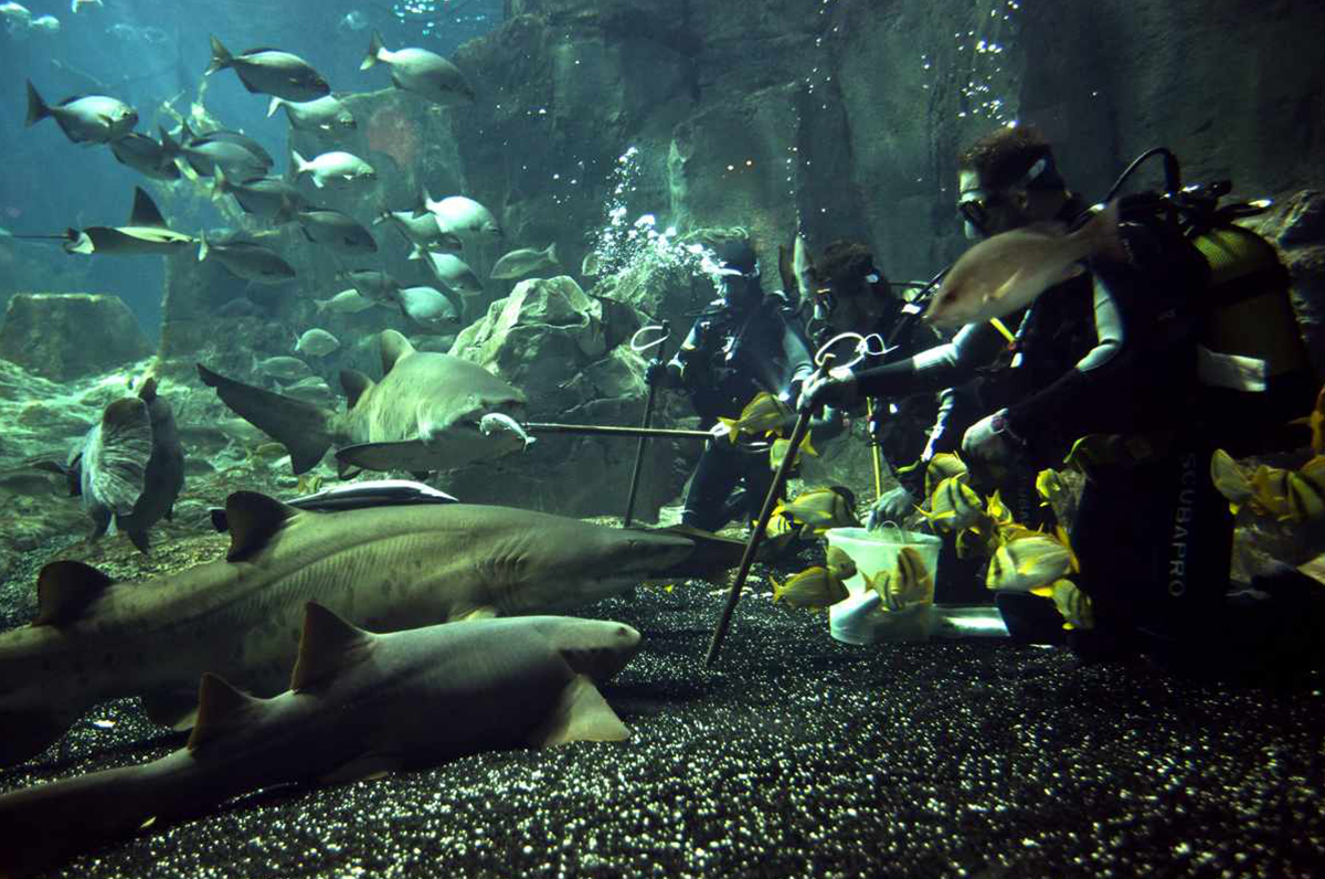 Пираньи плавают стаями и постоянно охотятся. Эти рыбы готовы учуять каплю крови даже за 2 км. Плавают в водах аквариума осетры, рыбы-клоуны, групперы, которые могут менять пол в зависимости от ситуации. Тут можно увидеть субантарктических пингвинов, появляющихся перед публикой всего на несколько минут, и 2,5 метровую анаконду!