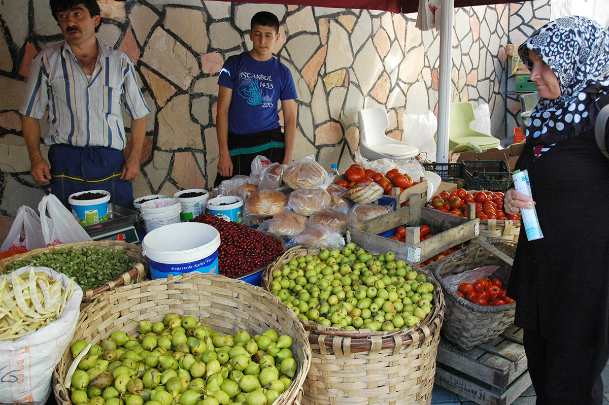 Работающий по воскресеньям до обеда в центре города продуктовый базар, куда фермеры из деревень привозят свою свежую продукцию: фрукты, овощи, орехи, хлеб анатолийский, пасты, мед.