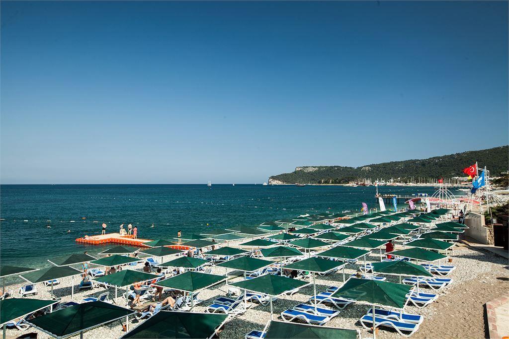 Власний піщано-гальковий пляж знаходиться в 150 м від готелю, через дорогу, по підземному переходу. Протяжність пляжу становить 170 м. Захід у море — пісок, галька.