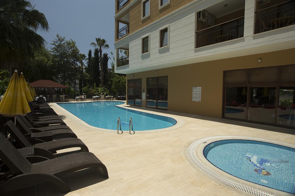 Отель расположен в 600 метрах от собственного пляжа на знаменитом пляже Клеопатра. Трансфер на пляж 2 раза в день (бесплатно). Гостиница находится в 2 км от центра Алании. Отель подойдёт для туристов, планирующих совмещать отдых в городе и на пляже.