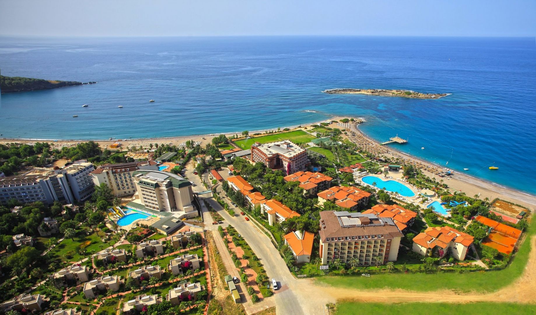 Отель расположен в 7 км от античного города Сиде, где можно ознакомиться с историей города и сделать памятные снимки на фоне развалин или амфитеатра. Собственный песчаный пляж находится в 300 м от отеля, через дорогу. До пляжа курсирует шатл.