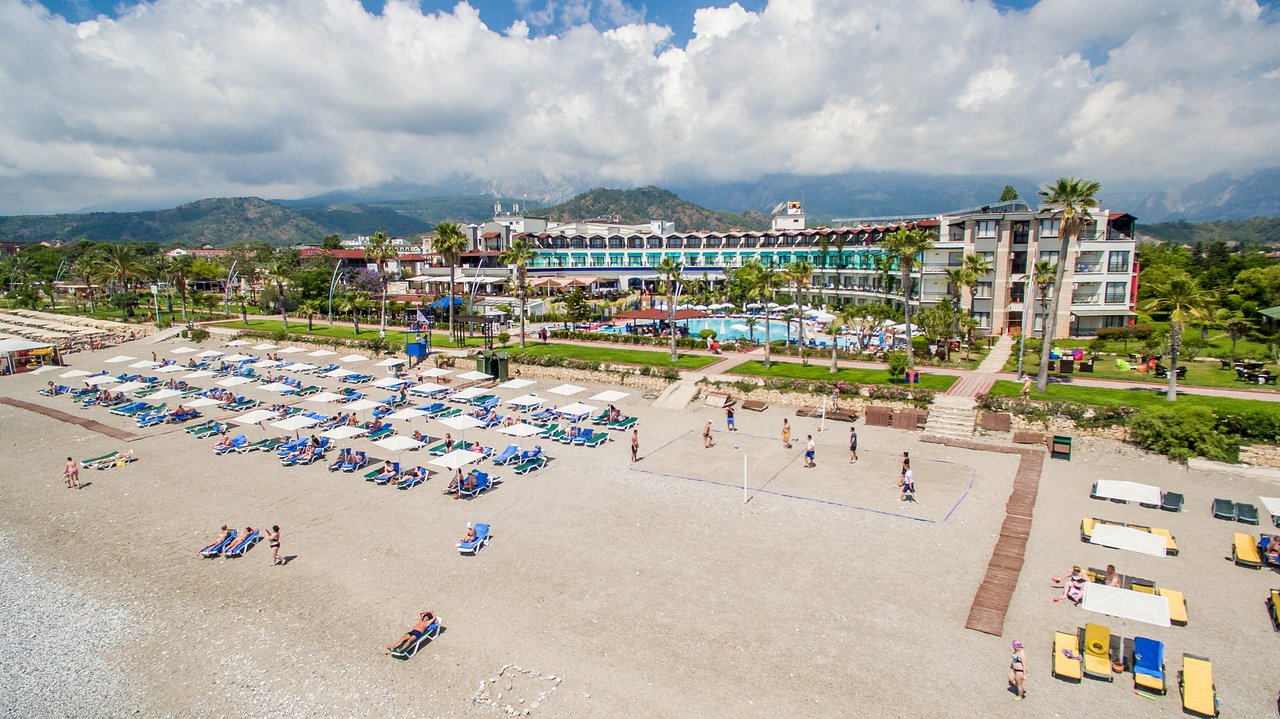 Собственный песчано-галечный пляж находится рядом с отелем. Протяженность пляжа составляет 150 м