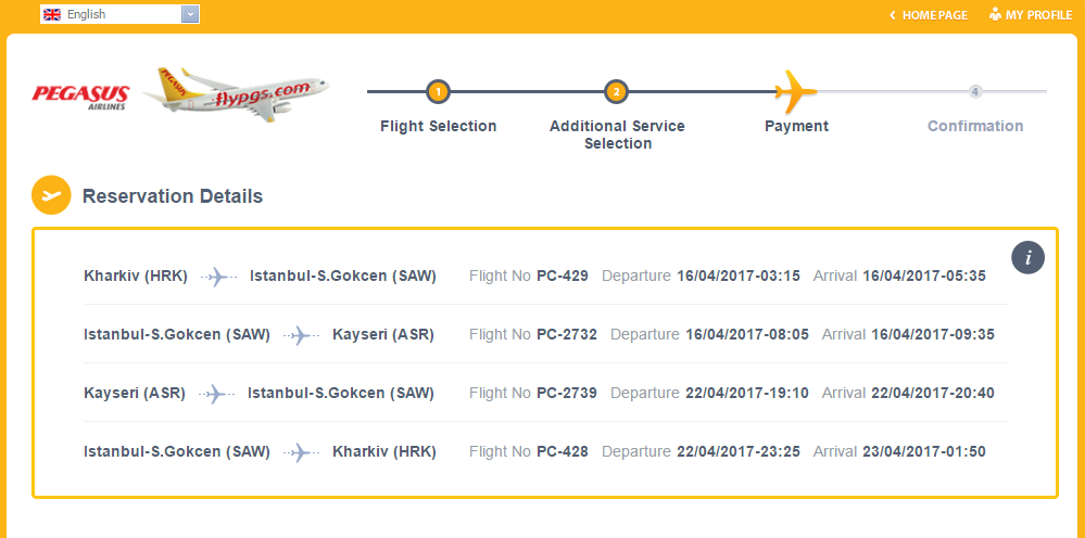 Назад возвращаемся 22 апреля в 19:10. Садимся на самолет в аэропорту Кайсери. Рейс с пересадкой в Стамбуле. Прибываем в Харьков 23 апреля в 01:50. Стоимость билета $68,98 (это цена со скидкой, полная цена билета – $137,98).