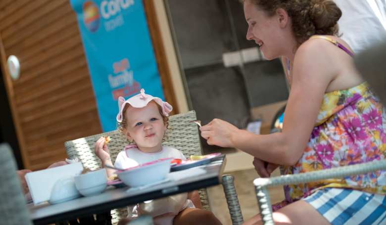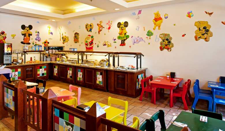 В семейном отеле должен быть детский ресторан или уголок с детской едой и маленькими столиками. Полноценное детское меню составляют пять основных групп продуктов — мясо, молоко, овощи, фрукты и крупы. Кстати, детский ресторан любят посещать мамы и папы. Они с удовольствием усаживаются за меленькие столики, чтобы разделить трапезу с малышом.