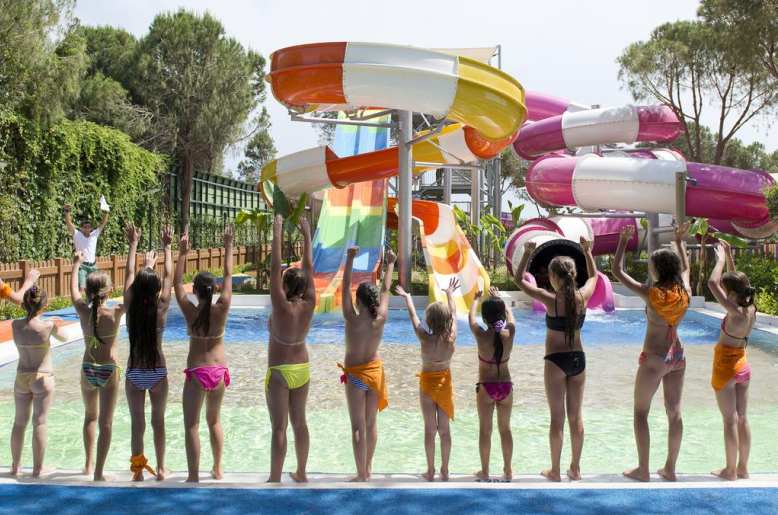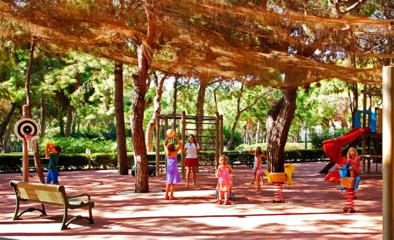 Мама с коляской даже не замечает, как она передвигается — есть пандусы. Учтены потребности малыша, который учится ходить – не поскользнешься. На пещаном пляже пологий заход в воду и деревянные настилы, оберегающие пятки от горячего песка. Тентов – в изобилии. Детский бассейн окружен тенью деревьев. На пляже есть летние домики с кроватями, где семьи проводят время между купаниями.