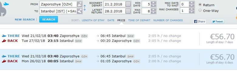 Запоріжжя – Стамбул, 21-28 лютого – 57 євро у два боки.