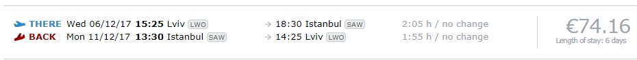 Львів – Стамбул – 6-11 грудня – 75 євро у два боки.