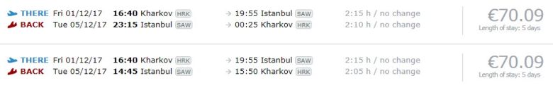 Харьків – Стамбул – 1-8 грудня – 70 євро у два боки.