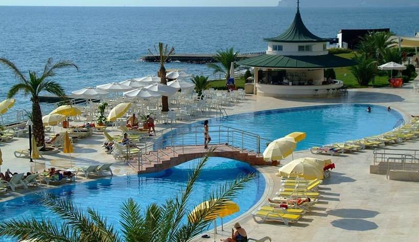 Про готель. Розташований на першій лінії з компактною зеленою територією. Власний піщано-гальковий пляж, понтон. Wi-Fi (безкоштовно, на території), 1 основний ресторан, 2 A’la Carte ресторани. 2 басейни – 1 відкритий басейн та 1 критий басейн. Дитяча анімація, міні-клуб (4-12 років), дитячий басейн, дитяча секція критого басейну. Безкоштовно: анімація, жива музика і турецька ніч, фітнес-зал, дартс, пляжний волейбол.