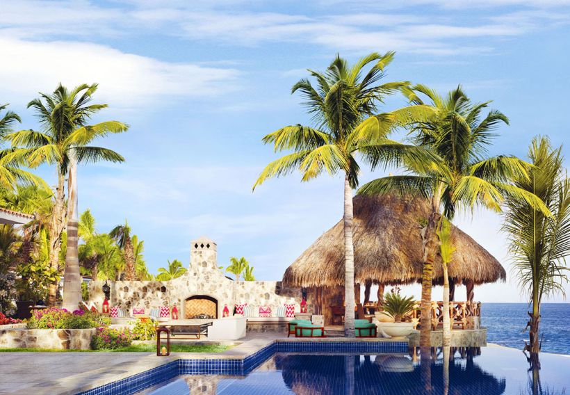 Берег тихого океана, белое здание, пальмы и собственный прекрасный песчаный пляж в двух минутах ходьбы. Номера отеля в мексиканском стиле украшены свечами. В отеле есть спа-салон, открытые бассейны, тренажерный зал, поле для гольфа, теннис. Дегустация текилы, более 1500 сортов вин в меню. One&Only Palmilla входит в 100 лучших отелей мира.