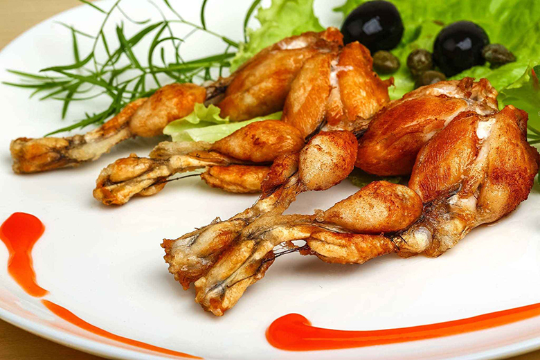 Вариантов этого лакомства множество: можно выбрать слегка обжаренные лягушачьи ножки, классические глубоко зажаренные или пасту из конечностей амфибии… По вкусу этот деликатес напоминает курицу. Во времена Столетней войны, когда еды катастрофически не хватало, французы ели лягушачьи лапки, виноградных улиток и луковый суп. Согласно еще одной версии появление деликатеса связано с запретом на охоту в угодьях короля и дворян: народу пришлось как-то выкручиваться, чтобы побаловать себя мясом.
