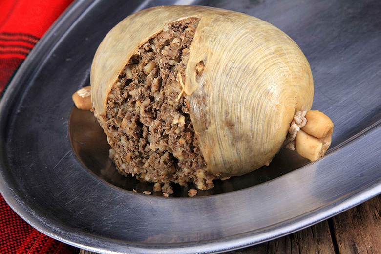 Любой список необычных европейских продуктов включает хаггинс – мясной пудинг из перекрученной печени, сердца, легких овцы, смешанных с овсяной мукой и говядиной, приправленный кайенским перцем, луком и солью.