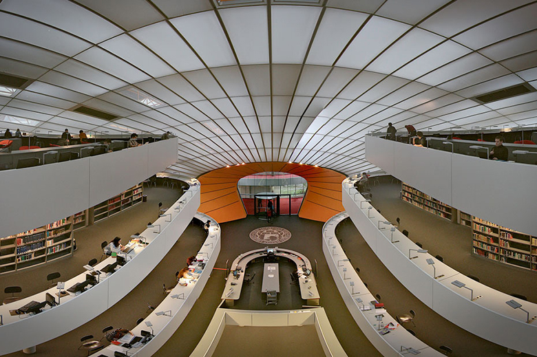 Британский архитектор Норман Фостер назвал свое творение «Мозг Берлина» – здание библиотеки, построенное по его проекту, внешне, да и внутри напоминает по форме мозг. Полое внутри пространство библиотеки наполнено извилинами, вдоль которых размещены полки с книгами по филологии, столы, компьютеры и кресла для учебы. Библиотека – это четыре волнообразных этажа внутри, и стеклянное яйцо снаружи, окруженное университетским кампусом и парковой зоной. Она открыта для всех желающих взглянуть на футуристическое чудо, а ночью ее внешний купол подсвечивается синими огнями и картинами.