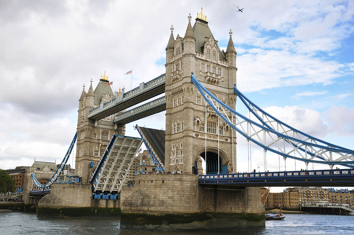 Бесспорно, знаковое для Лондона место. Этот комбинированный мост (одновременно и разводной и подъемный) стал самым известным в мире. Он состоит из двух башен, внутри которых лестницы и лифты. Башни соединены горизонтальным проходом, что позволяет пройтись по мосту в тот момент, когда он разведен и проехать по нему невозможно.
