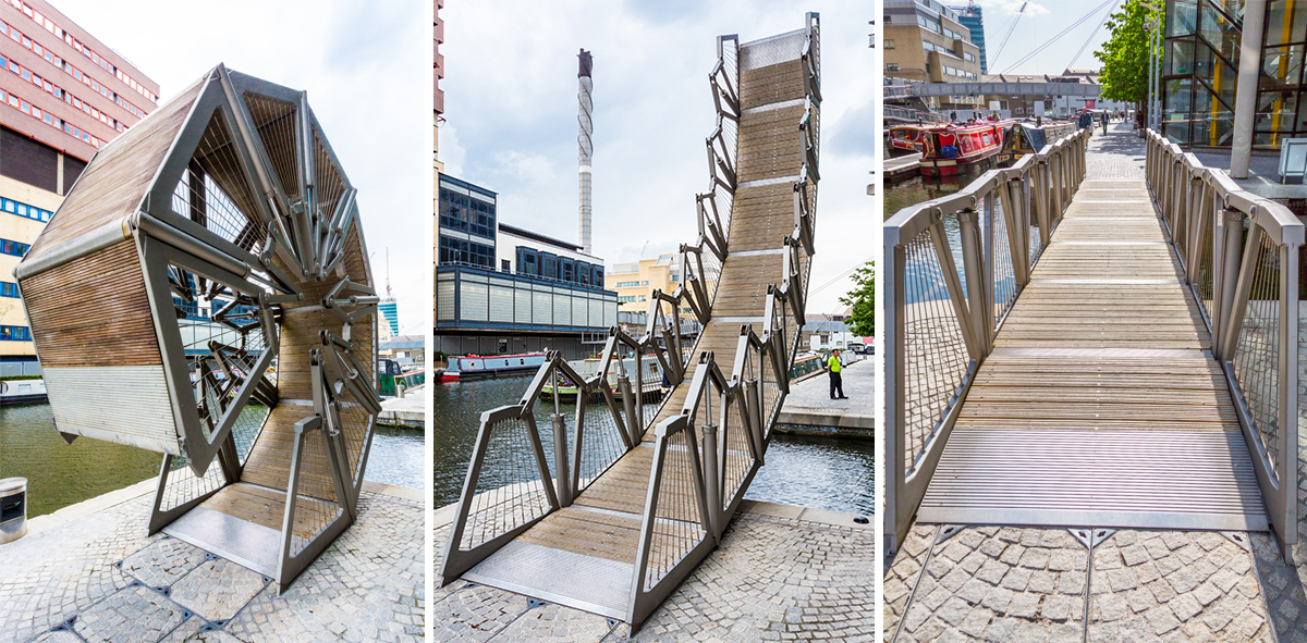 Мост состоит из восьми треугольных секций, а внешне напоминает обычный стальной и деревянный пешеходный мост. Его длина 12 м. Чтобы увидеть момент складывания звеньев моста, приходите сюда в среду и пятницу в 12:00 или субботу 14:00.