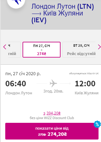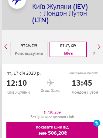 Київ — Лондон, 17-27 січня — €28 для учасників wizz-клубу та €40 для всіх інших
