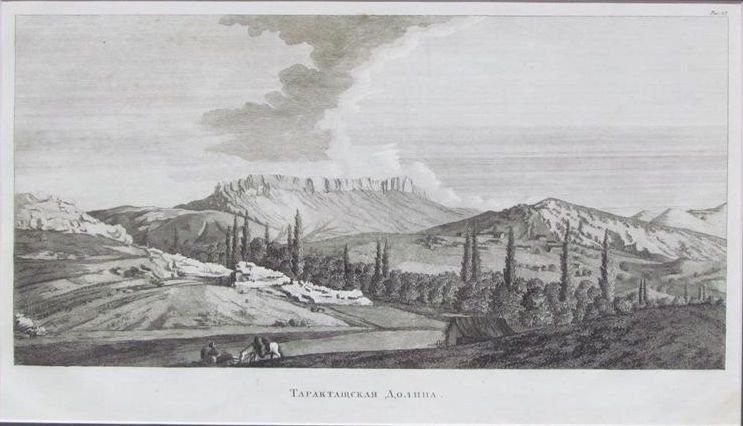 Гора Таракташ та Таракташська долина у 1805 році. Копія з гравюри Гейслера К. Р. Р. з книги П. С. Палласа, 1794