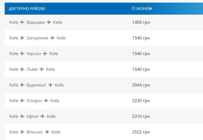 Список напрямків, на яких діють акційні тарифи, є на сайті МАУ, ось лише невелика частина пропозицій: