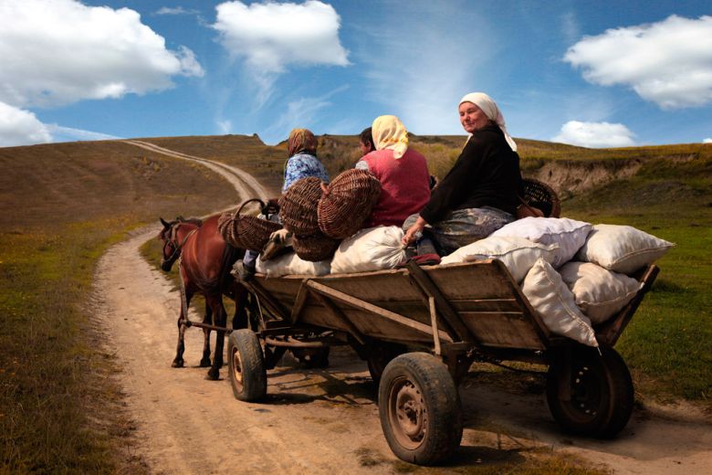 Что изменилось в деревенском быте за последние 150 лет? Появился телевизор. И деревянные колеса на повозках сменились на тракторные.