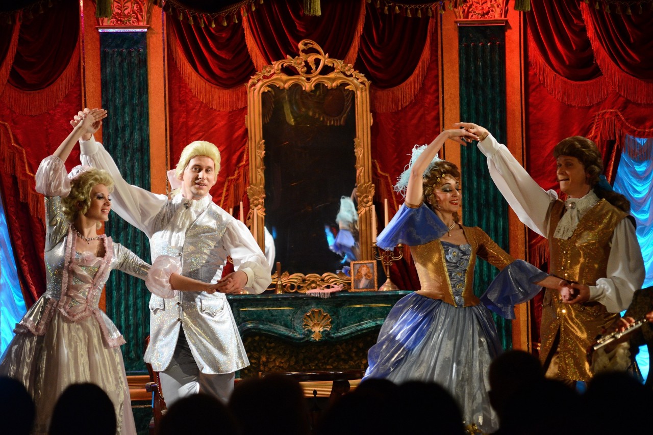 В интерьерах мрамор, позолота, лепка, живопись. Зал в бело-золотистых тонах, с пышными украшениями потолка и балконов готов вместить до 1000 зрителей.