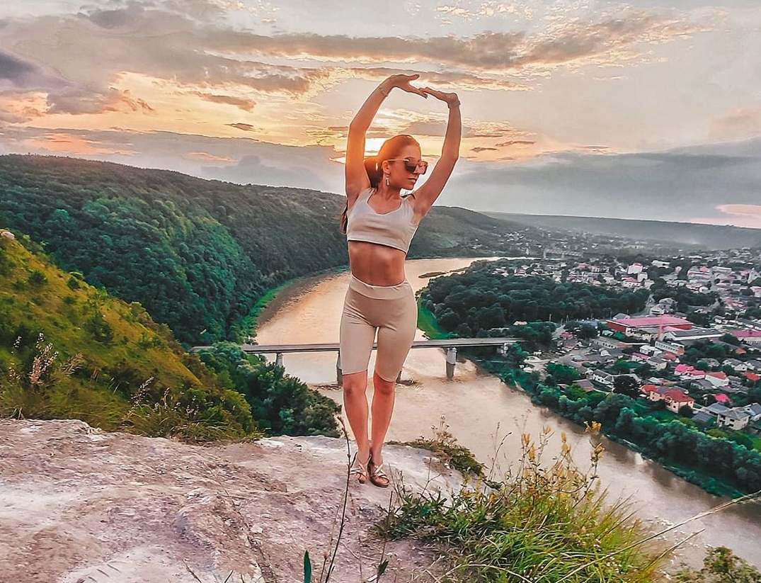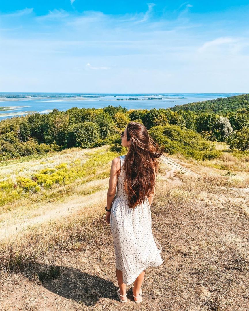 t__konstantinovna пише: “Небо❤ Вид❤. Нарешті ми сюди поїхали. Здається, пару км. від Че, а за свої 24 роки вперше там. Тиша, річка тече, пташки співають і такі надзвичайні краєвиди перед моїми очима. Україна прекрасна”. На цьому фото дівчина наче тримає руками небо. Виглядає захопливо!