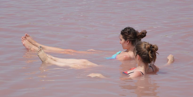 Что касается озера, история его появления удивительна и загадочна. Оно возникло на месте крушения военного самолета в конце шестидесятых годов прошлого века. И долго о его свойствах никто не догадывался. Концентрация соли в нем – 270-300 грамм на литр воды. И еще масса других элементов, обладающих лечебным эффектом. Необычная водоросль Дуналиела Салина придает почве розовый цвет, создавая совершенно уникальный инопланетный пейзаж. Этот растительный организм, способный существовать в очень соленой воде, также обладает лечебными свойствами.