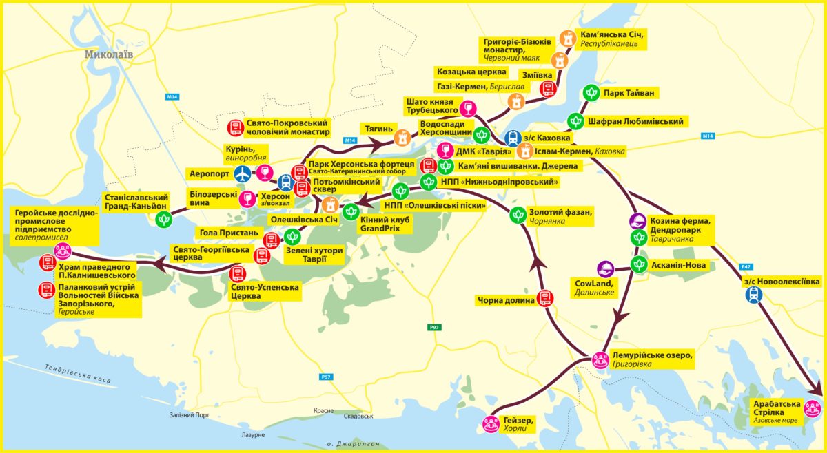 Херсонщина – єдина з областей України, яка має вихід до двох теплих морів – Чорного і Азовського. Тут неймовірні пляжі! Саме на Херсонщині знаходиться найдовша піщана коса в світі – Арабатська Стрілка і найбільший в Європі безлюдний острів – Джарилгач. А дельта Дніпра ховає дивовижний скарб: одні з найбільших у Європі плавнів міжнародного значення.