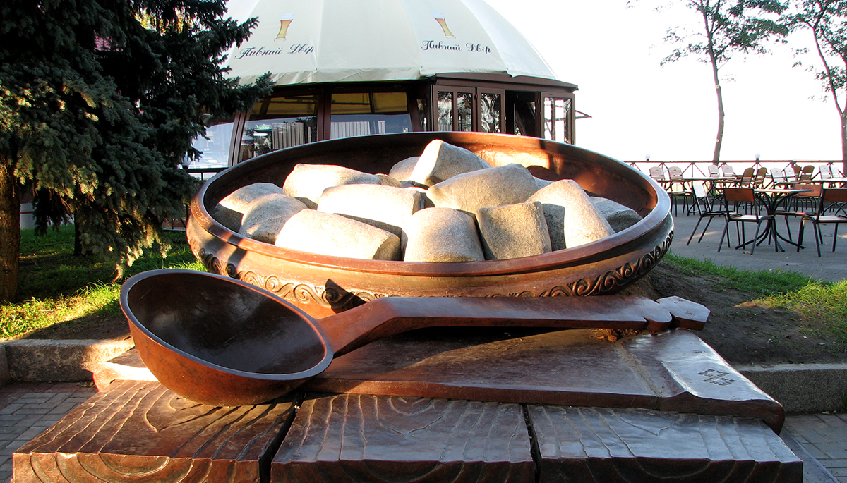 Полтава здавна славиться своїми галушками. Недарма там і пам’ятник встановили у формі великої тарілки з галушками та ложками. І ось у полтавців з’явилася нова традиція: якщо хочеш верховодити в сім’ї, треба посадити туди чоловіка чи дружину, а самим ухопитися за ручку. Вірити чи ні подібним переказам – справа кожного. Але багато хто стверджує, що після цієї процедури вони почали верховодити в сім’ї.
