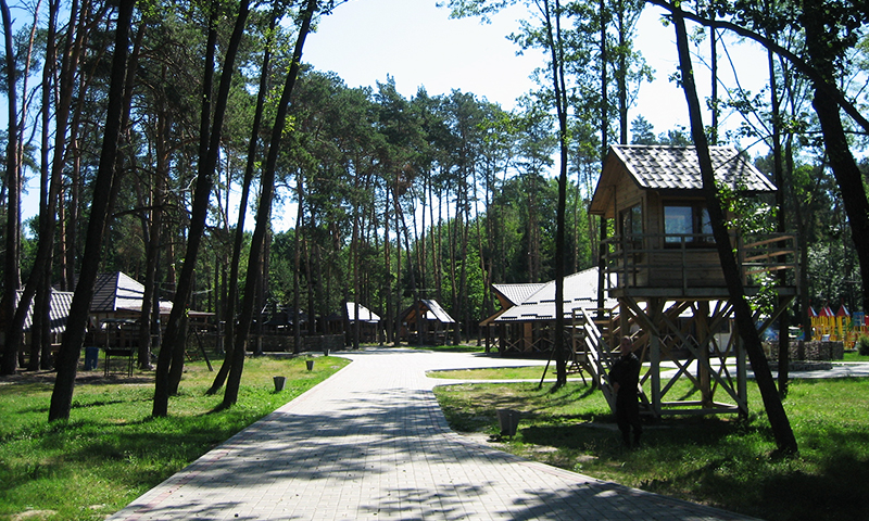 А еще на територии санатория есть необычные архитектурные сооружения, где можно поселиться всей семьей: в Медовой или Шевченковой хатах, в доме на суше, построенном в виде корабля или в особняке на искусственном острове. Здесь создали живописное озеро, где можно кататься на лодках и водных велосипедах.