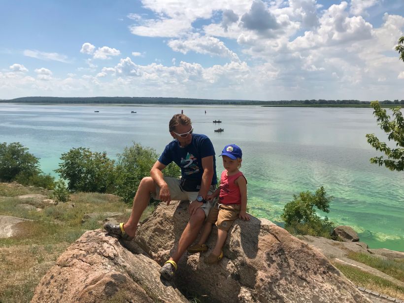 И вот мы на привале. Слева – Днепр, справа – карьерное озеро. Жабы квакают, птицы-камышовки бегают, сын играется в песке и просит нас скорее раздеваться и плавать.