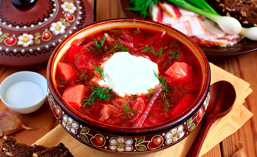 Одно из самых любимых блюд и не только украинцев – борщ. Вы скажите, что особенного в полтавском борще? На Полтавщине его варят на основе куриного бульона. Заправляют не только сметаной и зеленью, но и клецками (кусочками вареного теста). Представлены все три вида борща: красный, холодный и щавельный.